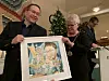 Årets eldsjel er Per Åge Laugaland. Teikninga er signert Nenad Ignjatic, og den fortel det meste om grunngivinga. Her er den glade mottakararen med ordføraren.