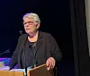 Gerd Helen Bø er ny leiar i Suldal Mållag, her frå festkveld målllaget stelte i stand i samband med at Ingvar Olimstad fekk overrekt Kongens fortenestemedalje.