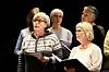 Det er ikkje berre Gullgutane som skal stå på scena denne våren. Det skal også damegruppa Osatrall og elevar i Kulturskulen. Lengst framme i bildet syng Sissel Berge og Brita Sofie Nærheim saman med resten av Osatrall.