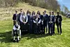Årets konfirmantar på Sand. Framme frå venstre: Magnus Solheim Johnsrød, Charlotte Veka, Magnus Elis Gudding Eyfjord, Benedikte Birkeland Haug, Sander Espedal-Østerhus og Herman Johnsen. Bak frå venstre: Tormod Hansen, Magnus Fossan Steine, Ilia Susanne Obrecht-Speth, Martine Dahle, Bertine Helland, Åsmund Torsteinbø Berge, Jakub Ragnar Szigeti og Roald Emuge Oluka.