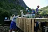 På land er det derimot alt anna enn stille. Her spring sju glade barn rundt, og det er latter og tårer om kvarandre. I tillegg til dei sju barna, er det også seks pratsomme vaksne som følgjer med på barna og hjelper dei i gang med fisking og klatring. Det er blitt sommar, og dermed også lys i hyttene og bubilar langs med den smale vegen ned til Tyssebotn.