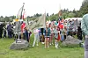 Oppstilling før opning av leiren. Eline Berge held gruppebanneret og Astrid Havrevoll held flagget.