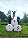 Arrangøren sjølv, Thomas Bakka, sprang til topps og vann Vinjanuten rundt 2024. Her i lag med Steinar Frønsdal frå Hjelmeland på 2. plass og Iver Bjerga Øverland frå Sauda på tredjeplass i klassen menn over 17 år.
