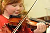 Suldal kommune er blant dei nominerte til Årets musikkkommune. Bildet er henta frå ein kulturskulekonsert og det er Matilda Schafstädt som er i sving på fela si.