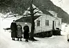 På Gryte. Frå venstre er det ei kvinna frå "Berget" i Vatlandslåg som er på besøk, Sofia Gryte (1876) og søstera Olena Gryte. Folgehuset på Gryte låg litt avsides og det kunne være tungvindt å komme seg fram. Huset hadde to inngangar. Hovudinngangen var framme (den me ser her) og ein kvardagsinngang på baksida. Eg gjekk alltid inngangen framme og døra var prega av alder og elde.