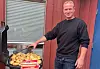 Eivind Selvikvåg svingde grillklypa og varta opp med sjølvmarinerte kotelettar og pølser i lange banar til dei femti som onsdag kunne meska seg med middag på Fjordatreffen.