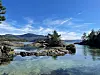 Knutsvikheia sett fra Økstrafjorden. Knutsvikheia er fjellet man ser i bakgrunnen, Gunlanuten er toppen helt til venstre, Herefjell til høyre. Pukkverket er planlagt i området som ses til høyre nedenfor Herefjellet.