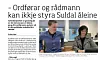 LESARBREV Ap har vore ute med kritikk mot styringa av Suldal. – Etterpåklokskap, meiner Venstre. Illustrasjon: Skjermdump frå avisa. LESARBREV: Etterpåklokskap Publisert 15.05.2020 - 12:19 Sist oppdatert 15.05.2020 - 14:19 Hei! Du må ha eit aktivt abonnement for å lesa vidare. 5 kr for 5 veker Deretter 155,- / mnd KJØP UNG u/33 år 100,- /mnd KJØP Student/lærling/militærGRATIS REGISTRER DEG Allerede abonnent? Logg inn her meiningar lesarbrev