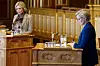 Helseminister Ingvild Kjerkol (Ap) (t.h.) svarar på spørsmål frå Sylvi Listhaug (Frp) om Helseplattforma under spørjetimen i Stortinget onsdag denne veka. Foto: Terje Bendiksby / NTB / NPK