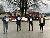 Monica Vela frå Ung Husflid, Kari Steine frå Suldal Røde Kors og Svein Øystein Berge frå Vinjar grendeutval, stod godt pandemiplasserte då Vibece Herabakka frå Sparebank 1 SR Bank delte ut førjulsgåver.