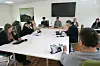 Her frå onsdagens møte i levekårsutvalet. Frå venstre Iren Klungtveit Slagstad (Ap), Sanja R. Heggelund (H), Ingebjørg Rullestad Gjerde, kommunalsjef oppvekst, Magne Steine (KrF), Grethe Jæger Anglevik, kommunalsjef helse og velferd, Marit Bog frå politisk sekretariat, Berit Myrland (SV) og Åsmund Bakka (Sp) med ryggen til.
