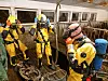 Brann og redningsarbeidet er mangslunge. Her er lokale mannskap ute på bergingsaksjonen av firbeinte i det som må kallast ein møkkajobb.