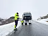 Sjåfør Redas Juodsnukis fekk ei lengre omkøyring over Gullingen enn planlagt då han køyrde frå Sand natt til måndag. Mekanikar Leon Villemsend har rykka ut til Hedlebrekk frå Aksdal for å få på plass ei mellombels løysing.