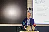Smitteverndirektør Geir Bukholm i Folkehelseinstituttet gjorde greie for for status for koronavaksinen på eit pressemøte torsdag morgon. Foto: Jil Yngland / NTB / NPK