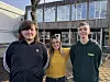 Denne trioen har god grunn til å vera fornøgde. Nå skal dei reisa til Kristiansand og representera Sand skule og Rogaland i finalen i veka etter påske. Andreas Yrkje og Noah Parelius Moe Lindseth, her med stolt lærar Anna Storcheus.