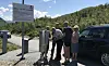 Fleire frustrerte stod bom fast når det gjaldt å få betala og opna bommen denne fine sommardagen. Til slutt fekk dei heiafarande hjelp. Tormod Hoftun i Suldal kommune opplyser nå at dei har fått til ei teknisk løysing der ein via telefon kan opna bommen ved behov. Foto: Marit Helland