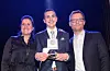 Ein glad Jon Einar Nøkling vart tildelt prisen som Årets lærling i Norgeshus. Frå venstre HR- og organisasjonssjef Vivi Fuhr Hjelde, Nøkling og Snorre Bjørkum, teknisk sjef. Foto: Henrik Møller/Norgeshus