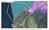 Innafor det kvit-stipla feltet planlegg Norsk Stein og Suldal kommune eit nytt stor kaianlegg med industriområde til. Det raud-stipla område er uregulert og privateigd.