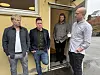 Det var behov for gruppemøte i Senterpartiet då kommunestyret i går gjekk for ein ganske utradisjonell saksbehandlingsvri for å få kontroll på det som skal bli grøn industriframtid på Berakvam etter at havvind-planane er ute. Her er, frå venstre, Lars Arne Bjørkland (Sp), gruppeleiar Øyvind Tveitane Lovra i samtale med Venstres Olav Lindseth. I døra står Reidar Sand (SV) som er kritisk til manøveren, der kommunestyret rett over bordet blant anna løyver 500 000 kroner til ein planprosess.