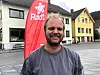Mimir Kristjánsson takkar fint for godt suldalsengasjement i jakta på den forlagde hua til Suldalsbunaden. Her frå valkampen på Sand i sommar.