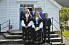 Erfjord kyrkje 11. mai. Framme frå venstre: Maren Kilane, Frida Øye og Elias Erfjord. Bak frå venstre: Espen Erfjord, Tobias Bog og Jone Skår Østerhus. Foto: Ole Jørgen Nøstbakken