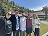 Spente levekårspolitikarar på veg til opninga av sjukeheimen før utvalsmøtet starta onsdag. Iren Klungtveit Slagstad (Ap), Øystein Wigestrand (Sp), utvalsleiar Lars Arne Bjørkland (Sp), Bonolo Ramphomane-Aandahl (V) vara for Dag Fisketjøn og Randi Laache Kiland (KrF).
