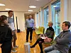Mads Drange (Ap) til venstre fekk sjanse til å diskutera nettbrett-bruken med fagfolka i pausen. Frå venstre Sanja Roganovic Heggelund (H), Mads Drange (Ap), Åsmund Bakka (Sp), Britt Elin Håranes, skulefagleg rådgjevar oppvekst og Thomas Knappestad, digital rettleiar for skulane i Suldal.