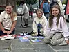 Strategisk plassert framfor Coop på Sand, går salet av fargerike sjølvlaga smykke rett så strykande for Agnes Rose Pearson og Helena og Emilia Mehus.