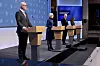 Helsedirektør Bjørn Guldvog, helse- og omsorgsminister Ingvild Kjerkol, statsminister Jonas Gahr Støre og Camilla Stoltenberg held pressekonferanse om koronasituasjonen laurdag formiddag.Foto: Beate Oma Dahle / NTB / NPK