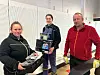 Sonen Iver Risvold Kvaløy hjelper foreldra Britt June og Jarle Kvaløy med å tømma butikkdelen og å gjera klart for legging av nytt golv.