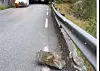 Ein av fleire steinar som måndag kveld kom ned i Rødsliane på samme staden som det større raset gjekk søndag føremiddag.