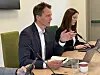 Ordførar Mads Drange, fotografert under formannskapets debatt om kraftutbygginga. Ved sida av sit Martine Førre frå politisk sekretariat.
