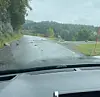 Steinras på Hebnesvegen. Det meste av raset gjekk i sjøen.
