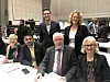 Geir Toskedal (i midten framme) er stortingsrepresentant og har permisjon frå fylkespolitikken så lenge han møter på stortinget. Dermed blir suldølen Svanhild Løge Skålheim (bak) fast møtande medlem i fylkets opplæringsutval dei neste to åra, så sant regjeringa blir sitjande. På bildet frå gårsdagens møte er også f.v. Solveig Ege Tengesdal, Jonas Andersen Sayed, Bjørg Tysdal Moe, heilt til høgre og bak står Reid Ivar B. Dahl, alle KrF-politikarar. Foto: Rogaland KrF.