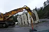 Måndag starta jobben med å fjerna trafoen, og i løpet av neste veke skal den vera heilt fjerna. Vegen på staden er lysregulert medan arbeidet pågår. Foto: Helge Lauvsnes