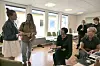 – Me vaksne må sjå på oss sjølve, og korleis me møter elevane våre kvar dag, sa inspektør ved ungdomsskulen Kristine Bø Berge, til venstre, etter orienteringa. Her med sosiallærar Solfrid Eide Foldøy, kommunalsjef for oppvekst, Ingebjørg Rullestad Gjerde og rådgivar på oppvekst, Britt-Elin Håranes. Bak SLT-koordinator Anne Lise Pedersen og leiar i ungdomsrådet Arin Eirikssønn.