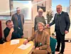 Suldal kommune og Haugaland brann og Redning IKS er glade for å ha kome til ein omforeint avtale. Framme brannsjef Dag Botnen og kommunedirektør Karin Dokken Austvik. Bak Yngve Bergesen, kommunedirektør i Vindafjord og medlem i forhandlingsutvalet , ordførar Gerd Helen Bø og Sigmund Lier, representantskapsleiar.