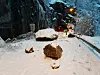 Totalt kom det ned mellom 10 og 20 kubikk stein i raset som gjekk mellom Falkali-og Vikatunnelen i natt og som nå stengjer rv13 mellom Nesflaten og Suldalsosen. Foto: Statens vegvesen.