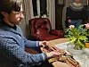 Me får også besøk av Husflidskonsulent William Riedlinger. Han har jobba med innsamling og kartlegging av vevde band i Rogaland dei siste tre åra.Foto: privat