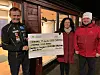 Leiar i skigruppa i Suldal IL, Per Even Tjøstheim, tar imot sjekken på 500 000 kroner som skal gå til snøkanon-anlegget ved Mosvatnet. Pengane får laget av Hjelmeland Sparebank, her med banksjef Susanna Poulsen og Odd Magne Hetlelid. Banksjefen er klar på at ein halv million kroner er ein stor sum for ein lokalbank å dela ut, men så gagnar det flotte anlegget på Gullingen også heile Ryfylke.